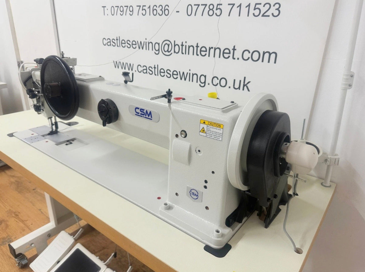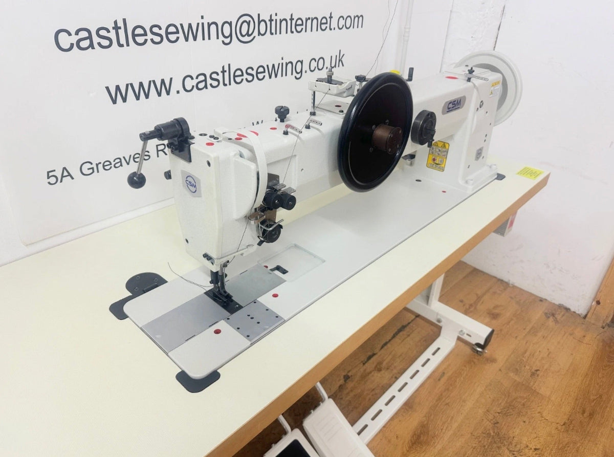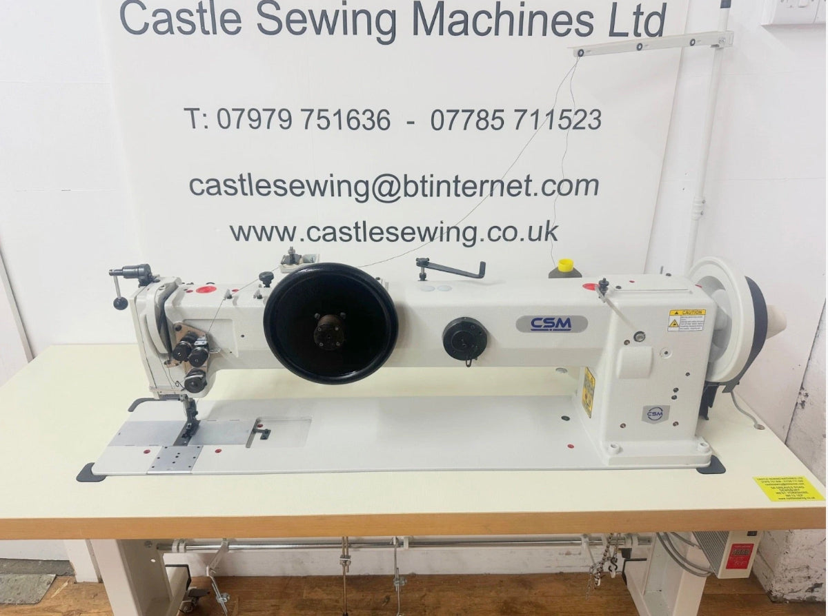 The CSM 221 is a high-quality machine brand new single needle heavy-duty walking foot needle feed machine. 20mm presser foot lift, 10mm stitch length